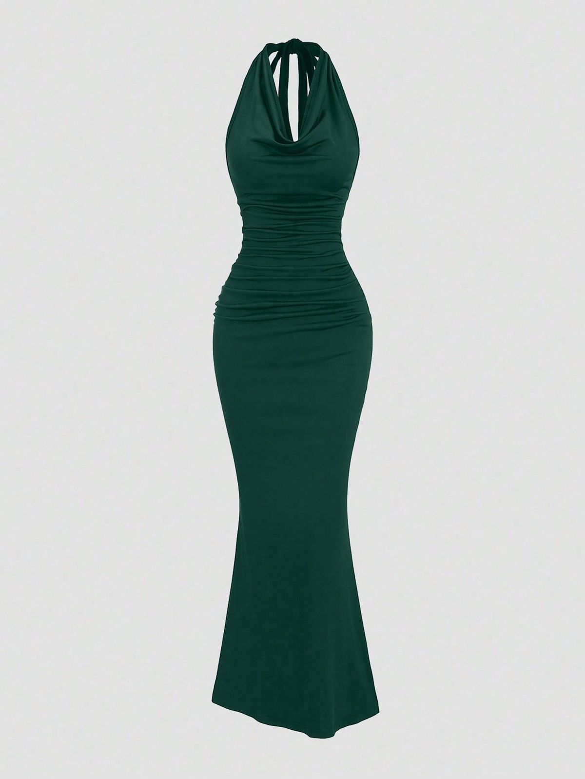 Black Halter Backless Fitted Mermaid Dress is designed to turn heads with its clean lines and sculpted silhouette. The halter neckline highlights the shoulders, while the open back adds a bold touch that still feels elegant. Soft ruching through the waist enhances the fit and creates a smooth, body-hugging look that flows into a flattering mermaid hem. Made to move with you, this Backless Fitted Mermaid Dress balances comfort with a striking, confident vibe, making it a strong pick for evenings that call for something extra.