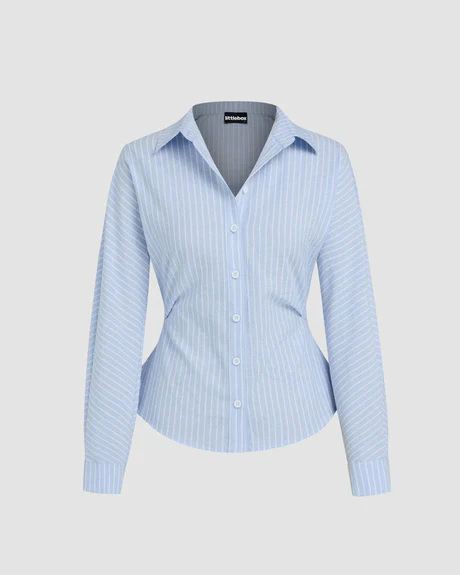 Introducing our Collar Striped Long Sleeve Shirt. This long sleeve shirt brings a crisp, clean vibe with its tailored silhouette and subtle vertical stripes. Designed to give a snug yet breathable fit, it’s all about sharp lines and all-day ease.